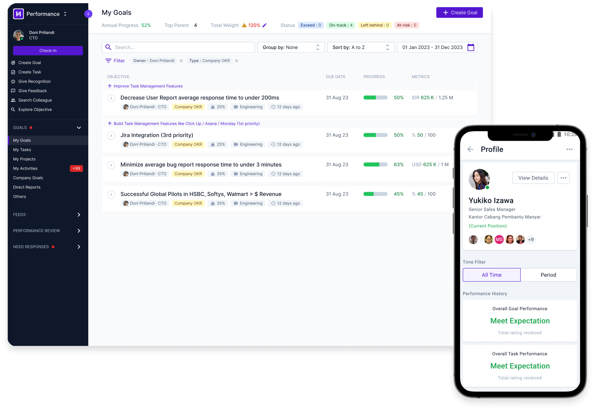 An employee performance management software is designed to enhance business performance by boosting employee productivity and driving better results. It supports traditional reviews with real-time performance tracking, goal setting, and continuous feedback.
